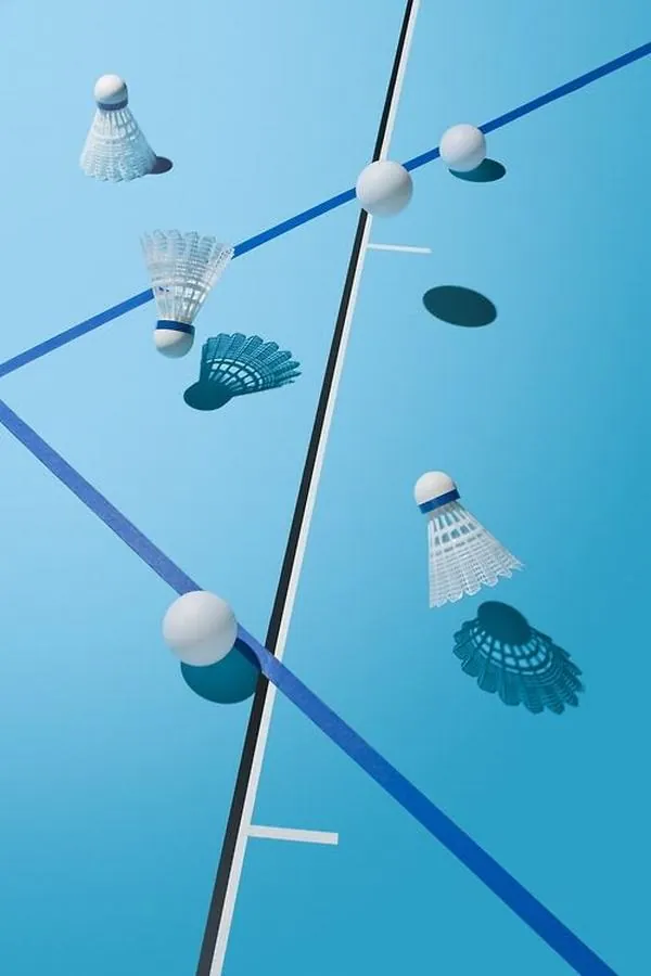 Những quả cầu lông sắp xếp đầy ngẫu hứng trên nền xanh dương đậm tạo nên một hiệu ứng thị giác sinh động và vô cùng thu hút người nhìn.