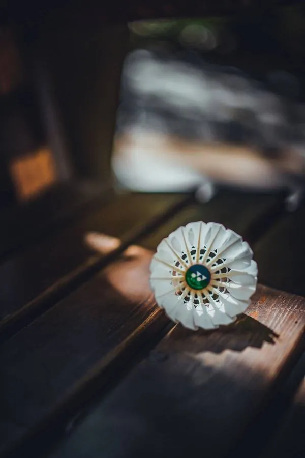 Ảnh nền một quả cầu lông nằm lặng lẽ trên sàn gỗ với bóng đổ dài đổ xuống sân tạo nên cảm giác bình yên nhưng không kém phần nghệ thuật.
