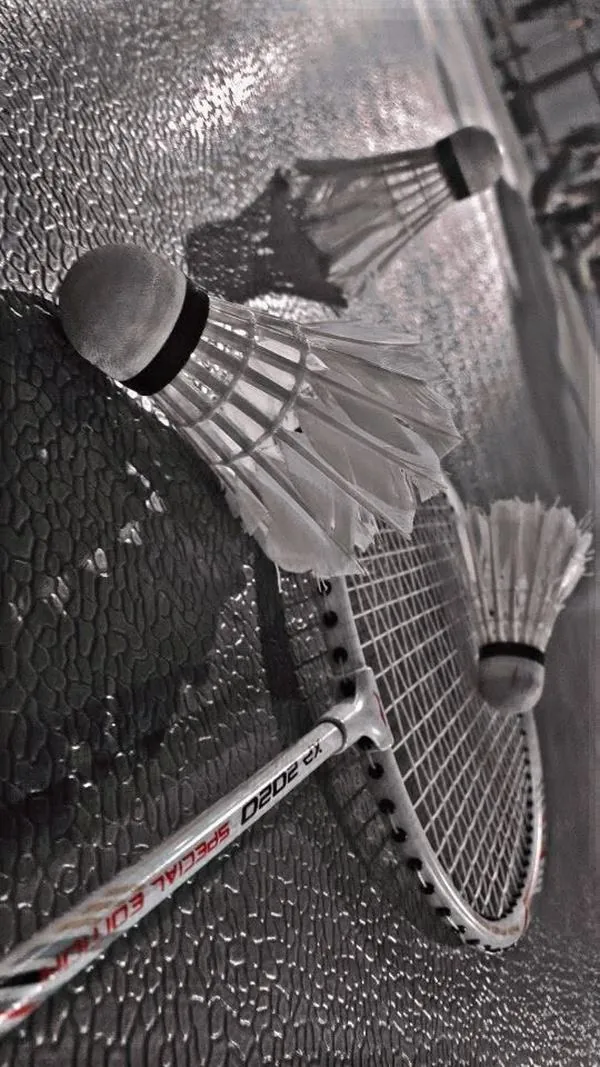 Hình nền lông cầu đen trắng tập trung vào từng chi tiết nhỏ của chiếc vợt và quả cầu mang đến vẻ đẹp vừa cổ điển vừa có chiều sâu không gian rõ rệt.