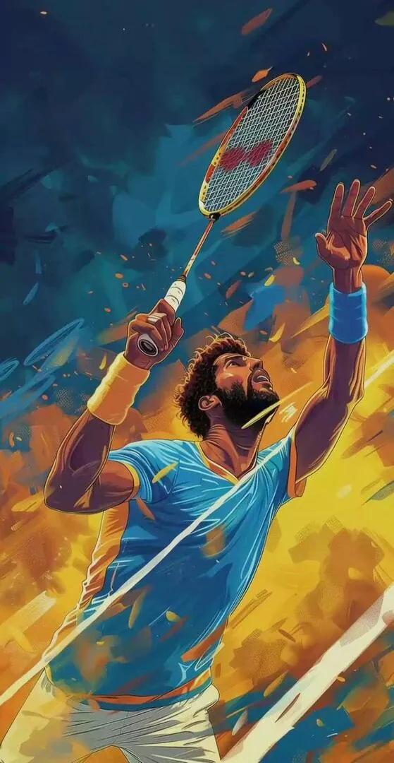 Hình nền cầu lông 4k dạng tranh vẽ minh họa cú nhảy đập cầu đầy uy lực với những vệt màu vàng xanh đan xen thể hiện tốc độ đáng kinh ngạc.
